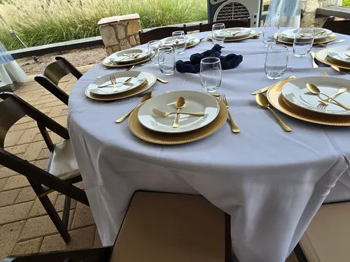 From classic dinner plates and salad plates to polished flatware and crystal-clear glassware, we offer everything you need to create a beautifully styled tablescape. Perfect for weddings, corporate events, birthdays, and special occasions of all kinds.