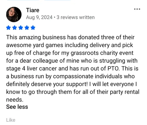 We're all about giving back! At Nava Party Rentals, we support local events and charities, helping to make our community stronger and more connected.