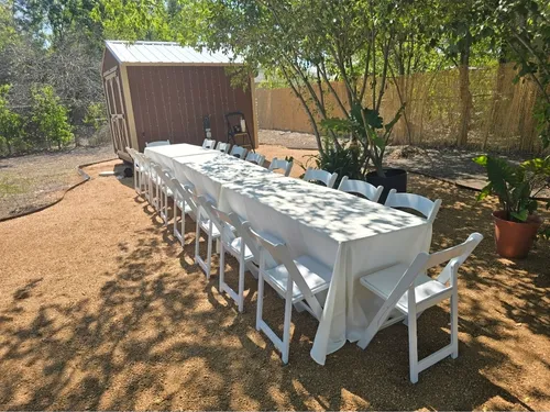 At Nava Party Rentals, we don’t just provide tables — we help you create the full experience. Don’t forget the finishing touches: elegant linens, under-table lighting to set the perfect mood, backdrops for added flair, and matching dishware and tableware to make your event truly shine. Explore all of our table options and accessories below to bring your vision to life!